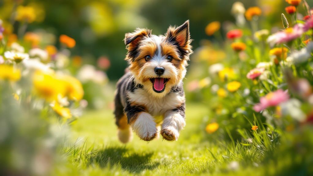 A Cesky Terrier's living and exercise requirements are crucial for guaranteeing a balanced and happy life. These small dogs, standing 10-13 inches tall and weighing 14-24 pounds, fit perfectly into apartment living, but they need regular exercise to keep their energy levels in check. Aim for about 45 minutes of exercise daily, which can include walks, backyard games, or even agility competitions. Outdoor play is something they truly enjoy, but their high prey drive means you'll need to keep them leashed and supervised to maintain their safety during these activities.