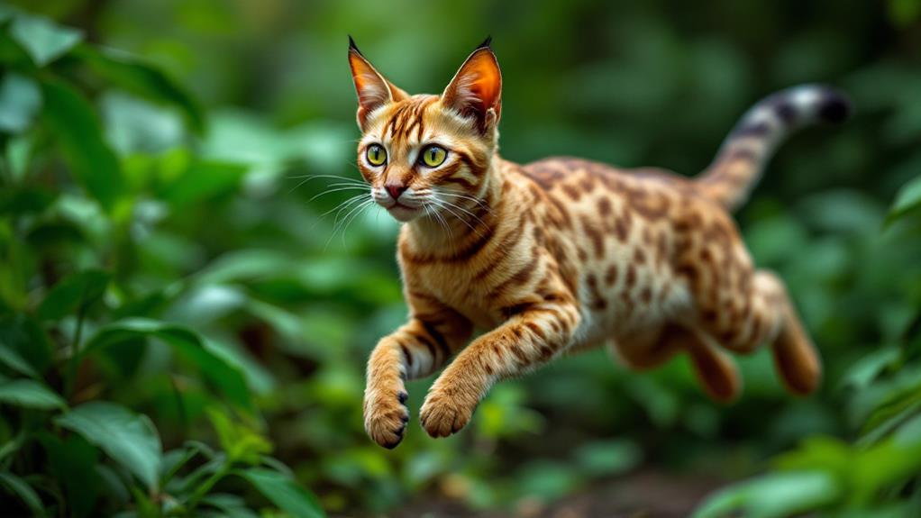 Imagine having a cat that feels more like a lively and curious companion. That's exactly what Chausie cats bring into your life. Known for their energetic and affectionate nature, they thrive on being sociable members of your family. You'll find them enthusiastically engaging in playful activities, making them perfect for households with older children. Their intelligence shines through as they exhibit dog-like behaviors, such as fetching, which highlights their playful and interactive personalities.