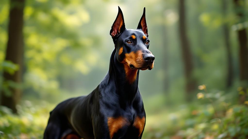 You'll find the Doberman Pinscher to be an impressive guardian, bred in the late 19th century by Karl Friedrich Louis Dobermann in Germany. Combining traits from breeds like Rottweilers and Weimaraners, these dogs are both powerful and loyal. They're medium to large-sized, with sleek coats in diverse colors and a strong, muscular frame that supports their agility and speed. Their intelligence and protective instincts make them exceptional watchdogs. Early socialization and consistent training are essential for these energetic dogs. With proper care, they can lead healthy lives, usually spanning 10 to 12 years. Uncover more about these remarkable companions.