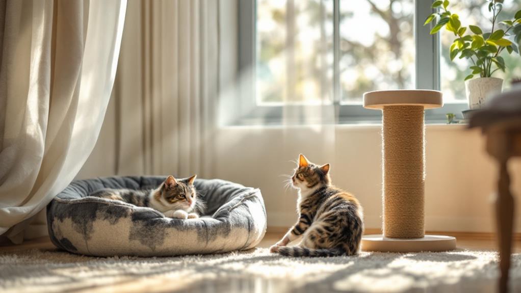 When selecting bedding, prioritize cleanliness by choosing beds that are easy to wash. This not only prevents odors but also guarantees a healthy resting space. Placing the bed in a quiet, draft-free corner of your home can help your kitten feel safe and encourage regular napping. Consider using soft materials that offer comfort and support for their developing body.