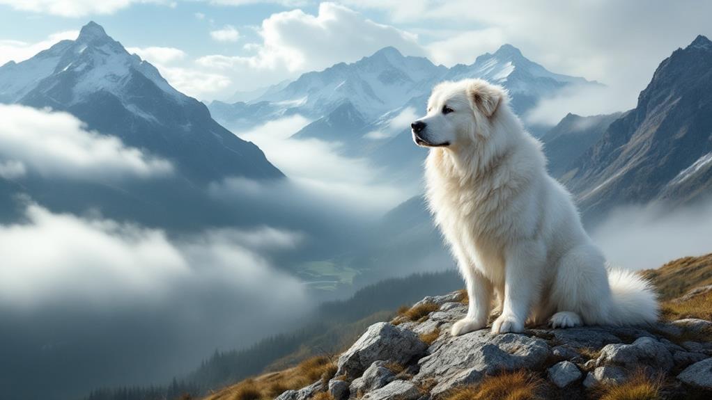 You'll find the Great Pyrenees are legendary for their vigilance and gentle nature, originating from the Pyrenees mountains as livestock guardians. They're large, with a striking white coat and unique double dewclaws that help them navigate rough, snowy terrain. Known as "Gentle Giants," they're incredibly protective yet calm companions who thrive in family settings. Regular grooming and positive reinforcement in training are essential due to their independent temperament. Engaging them in physical activities like hiking maintains their health and happiness. Continue exploring to truly appreciate their unrivaled guardian qualities and historical significance in mountainous environments.
