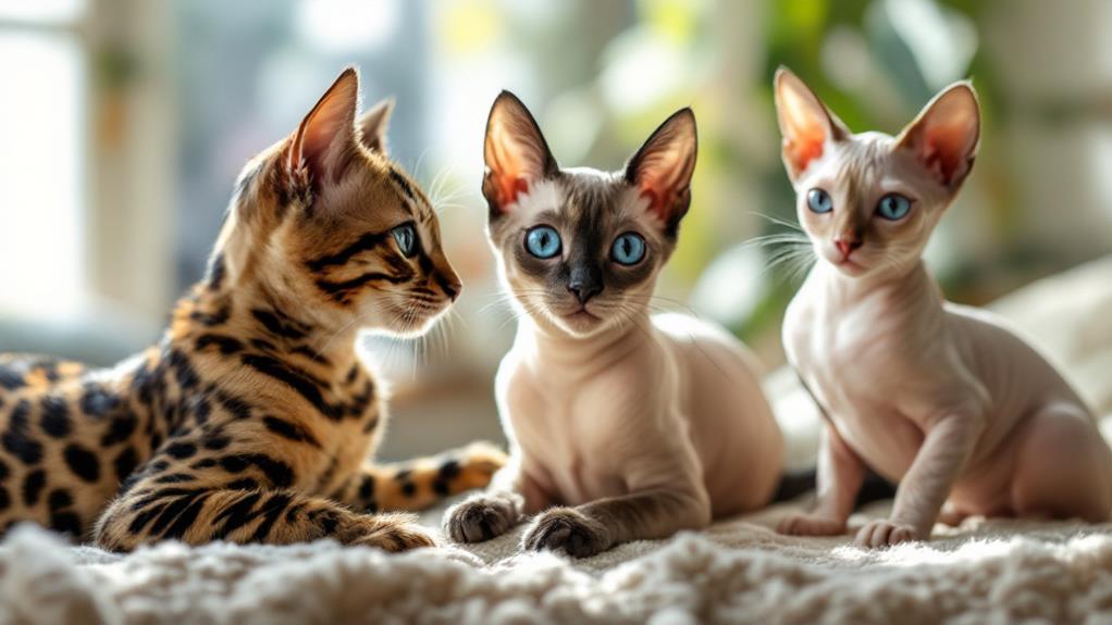 The Bengal cat stands out with its stunning, leopard-like appearance, making it an enchanting improvement to any home. Bengals are renowned for their unique coat patterns that mirror the majestic wild cats, capturing the awe of anyone who encounters them. They're not just a pretty face, though. These cats are energetic and playful, requiring plenty of mental stimulation and interactive play to stay happy and healthy. You'll find Bengals love to engage in fun activities, making them perfect companions for those who enjoy active lifestyles.