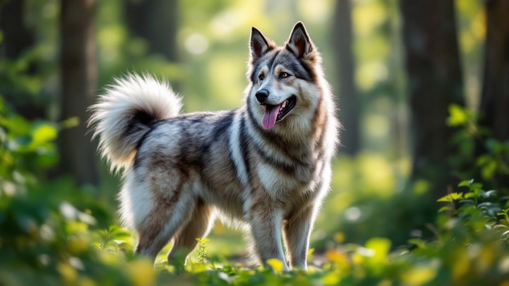 Opting for a Norwegian Elkhound means welcoming a lively and devoted spitz-type breed into your active family. This medium-sized dog, known for its hunting origins, boasts a strong build and a charming curled tail. It demands regular grooming due to its thick double coat and needs at least 40-60 minutes of daily exercise. A loyal companion, the Elkhound bonds deeply with family members while being wary of strangers, making early socialization essential. Training is best approached with consistency and positive reinforcement. By embracing these aspects, you'll set the foundation for a rewarding experience with this beloved breed. Uncover more ahead!