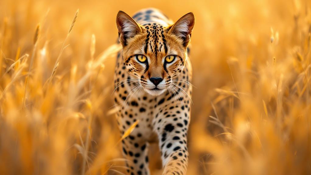 Uncovering the Serengeti cat means embracing a blend of elegance and wild beauty. Created in 1994, this breed was designed to mimic the striking serval, minus the wild genetics, through a mix of Bengal cats and Oriental Shorthairs. You'll find them lively, affectionate, and always up for playtime, making them excellent companions. Their appearance boasts a plush coat with notable ghost spots and ears ready for adventure. Regular vet visits and a high-protein diet are key for their health. If you're seeking a rare, engaging feline, the Serengeti might just be the perfect match. Investigate further to uncover more details about this remarkable breed.