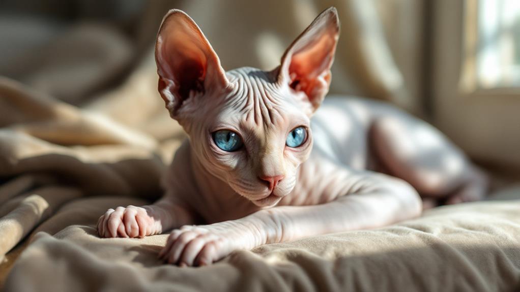 You'll find the Sphynx cat irresistibly charming with its regal yet hilariously silly personality. Originating from Toronto in 1966, this hairless feline demands attention with its large ears, prominent wrinkles, and affectionate nature. It thrives on human interaction and interactive play, making it a beloved pet. You'll need to dedicate time to its care due to skin oil buildup and vulnerability to temperature changes. Despite some health concerns like hypertrophic cardiomyopathy, they can enjoy a long, loyal life. If you're enthusiastic to investigate more about maintaining their happiness and health, there's much to uncover about these unique companions.