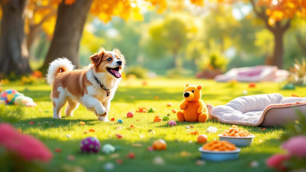 To keep your dog healthy and happy, schedule regular vet check-ups to catch any health issues early. Feed them a balanced diet tailored to their stage, breed, and activity level, and always keep fresh water available. Incorporate daily exercise with at least two walks and interactive play. Provide mental stimulation with toys and food puzzles to engage their minds. Pay attention to their dental health by brushing their teeth regularly. Ascertain they're socialized and safe with proper home modifications and affection through play and bonding times. There's even more to uncover about keeping your furry friend thriving!