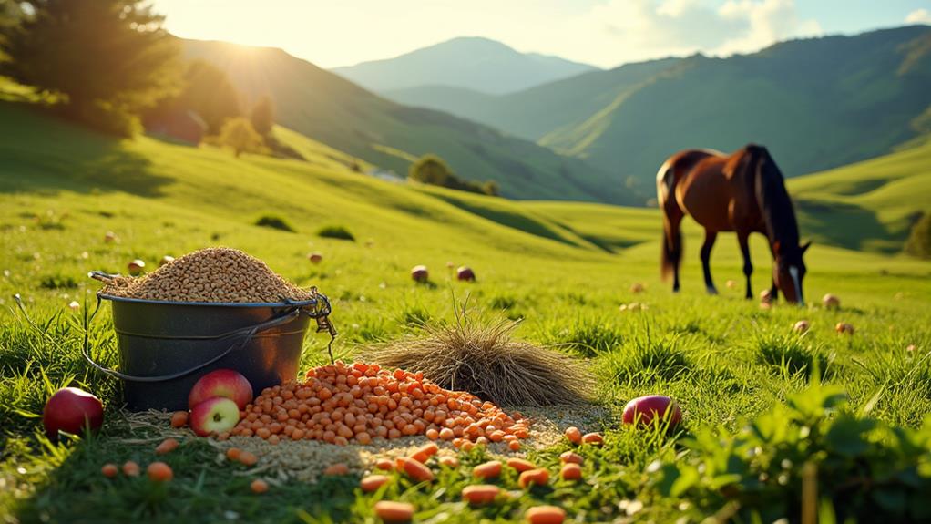 Water supply is another important aspect. Horses need between 5 to 10 gallons of water daily, and in hot weather, this can increase to 18-24 gallons. Ensuring a reliable water source on your land is critical for their health. Furthermore, pasture quality needs regular assessment. Implement effective grazing management practices and monitor for toxic plants to maintain a safe environment. Special dietary considerations, especially for ponies and older horses, are necessary. Collaborating with a veterinarian can help create tailored feeding plans, preventing issues like colic and ensuring proper nutrition. By focusing on these aspects, you'll support your horses' health and happiness.